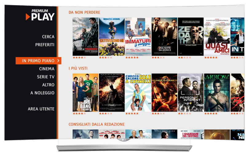 Si può accedere a Premium Play dal canale 310 dei TV abilitati1 connessi a Internet. Tra questi figura la gamma completa di TV OLED LG, che si confermano la soluzione migliore per fruire in modo customizzato di contenuti smart.