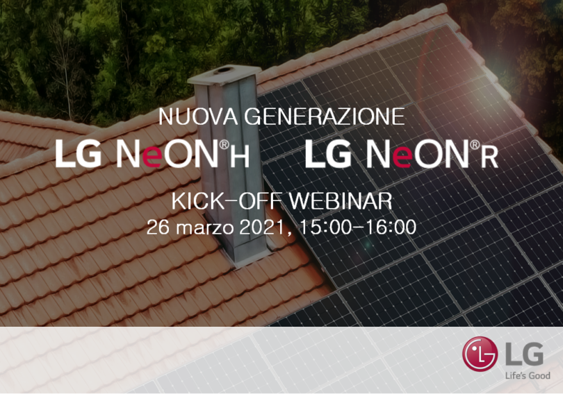 Milano, 09 marzo 2021 – La divisione Solar di LG Electronics organizza un webinar gratuito per presentare in anteprima per il mercato italiano, la nuova generazione di moduli fotovoltaici LG serie NeON H e NeON R. L’appuntamento online, riservato ai professionisti del settore fotovoltaico, avrà luogo il 26 marzo dalle ore 15 alle 16.